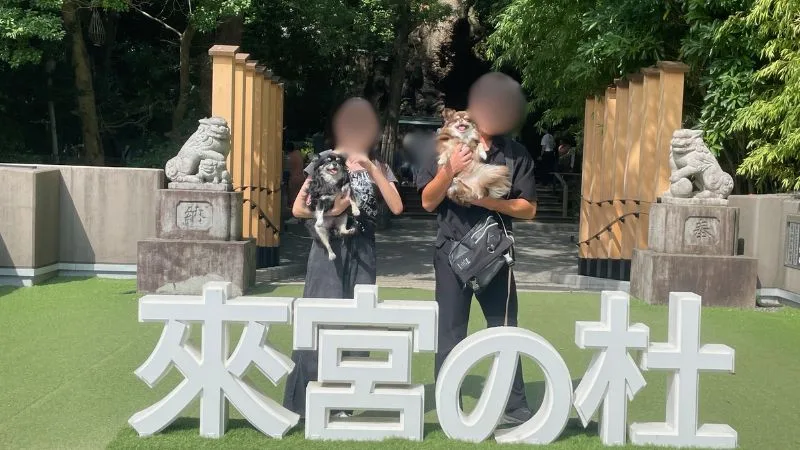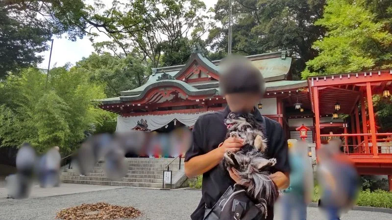 ・リード着用で犬連れ参拝OK(我が家はキャリーで参拝)